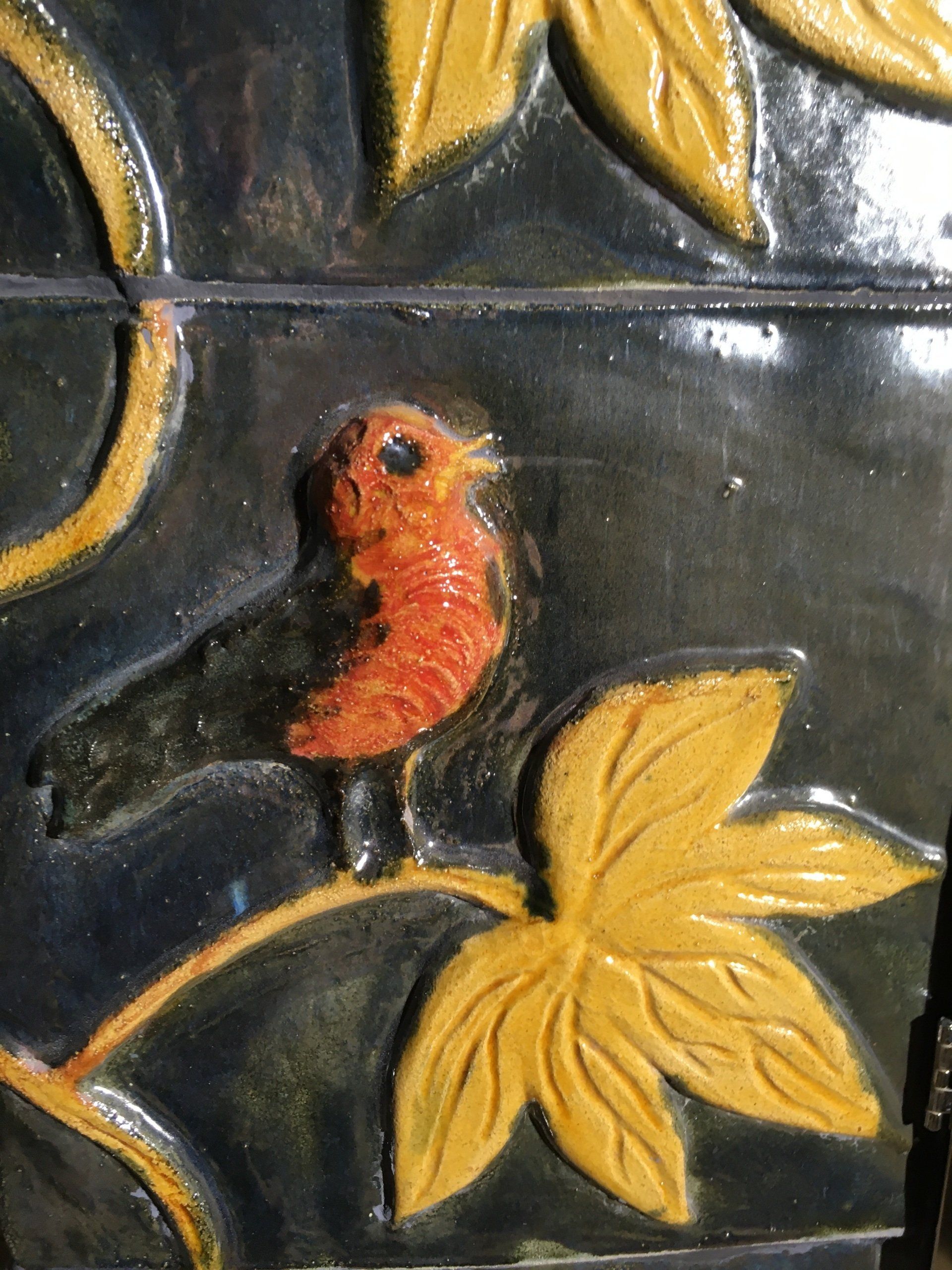 Humala & Punarinnat kaakeliuuni on noin 95cm leveä ja 60cm syvä. Korkeutta on noin 200cm. Tässä kuvan uunissa on myös leivinuuni mikä voidaan myös jättää pois jos sille ei ole tarvetta.